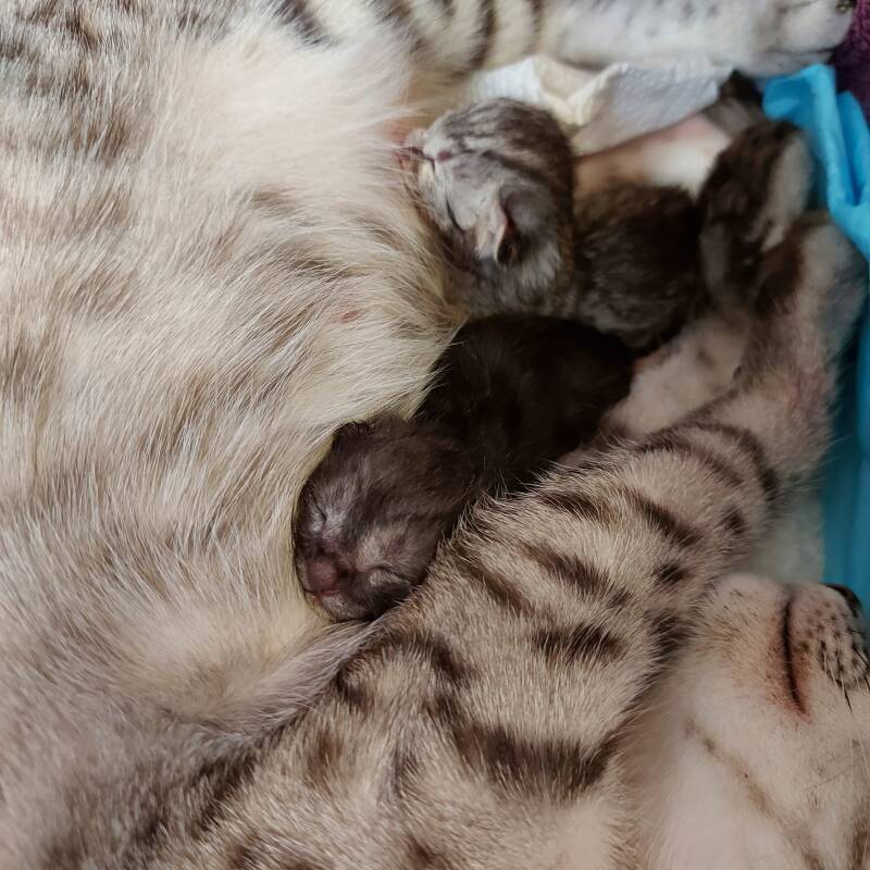 Ondanks dat Bisou heel veel was aangekomen tijdens haar zwangerschap bleef het bij 2 kitttens.