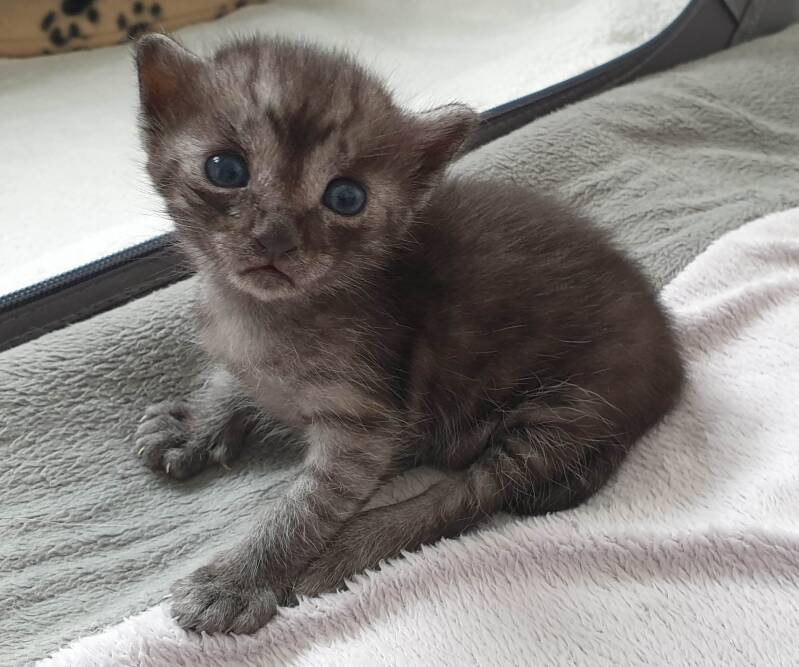 Dit tweede kitten bleek een smoke kleur te zijn dus wat waren wij blij....we zouden een dame die al meerdere jaren wacht op de geboorte van een smoke blij kunnen maken.