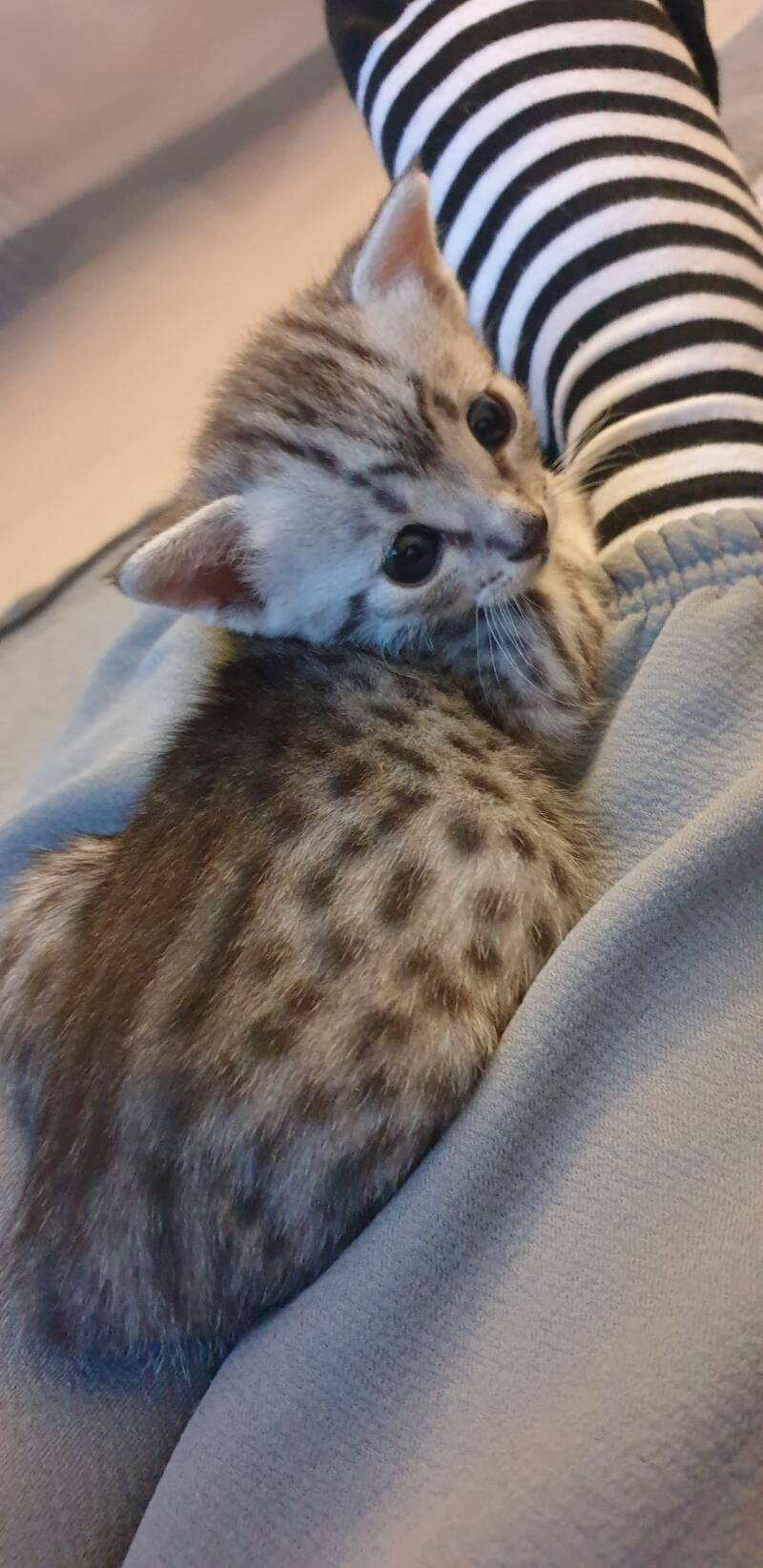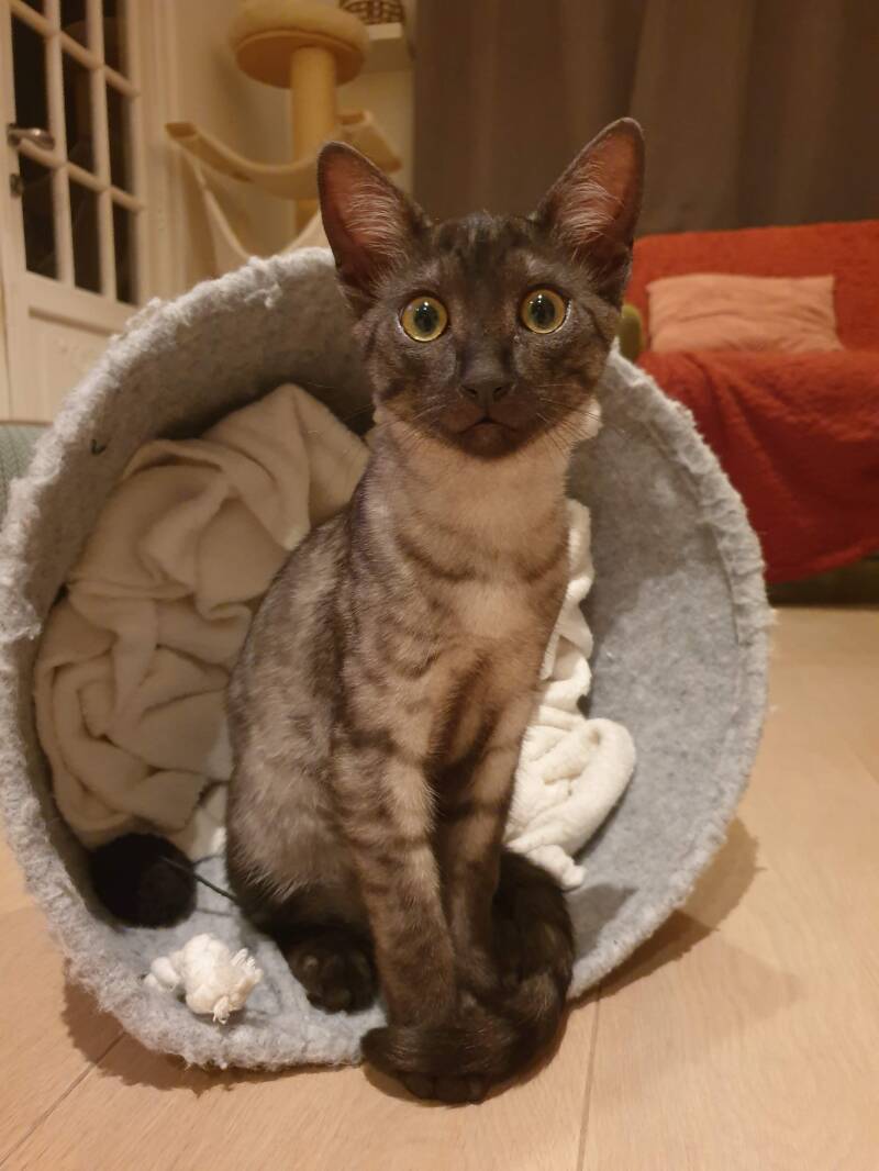 Gedurende de nacht hoorde ik de 2 broertjes tutten en ik vond dat vreemd dat ik dat kon horen. Ze zogen zich dus niet perfect vacuum aan de tepel. Hierdoor kregen ze niet voldoende melk binnen en werden ze moe waardoor ze helaas ’s ochtends afgevallen waren. Ik maakte me wel wat zorgen en stond in nauw contact met een collega fokker. Ze adviseerde me om beide kittens 2ml bij te voeren en een druppel nutridrops te geven. Op die manier kregen ze kracht om beter te kunnen zuigen bij moederpoes. Dit deden we 36u en we merkten duidelijk dat ze meer kracht kregen en ze kwamen dan ook bij qua gewicht. Na die 36u weigerden ze plots het spuitje melk met miracle nipple en vertrouwden we er op dat moederpoes Bisou het volledig kon overnemen. Ze groeiden vervolgens ontzettend goed en werden 2 prachtige katers Simba en Mika.