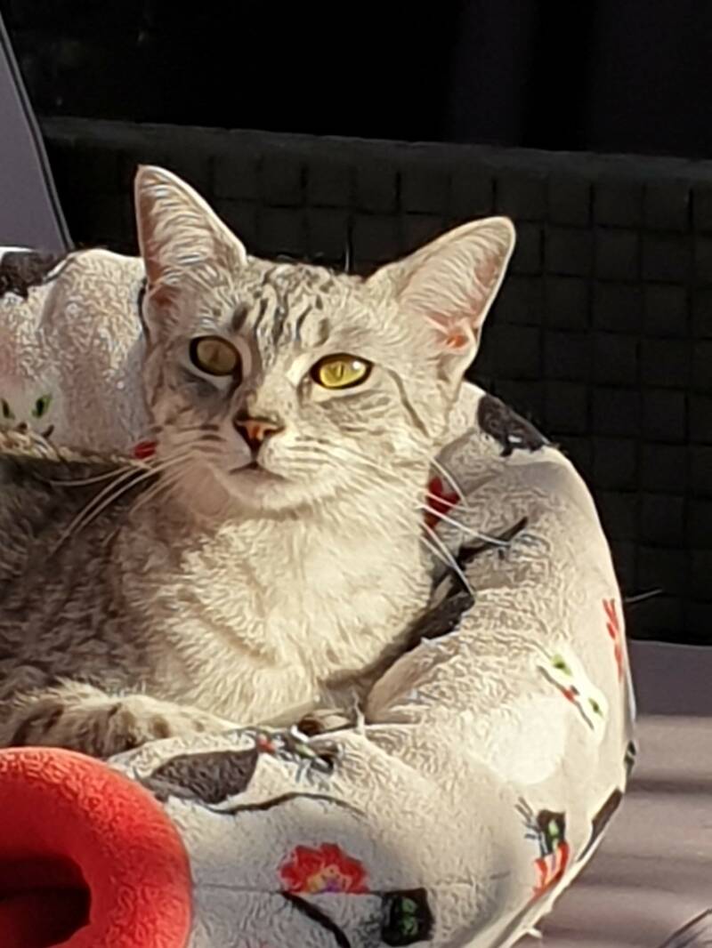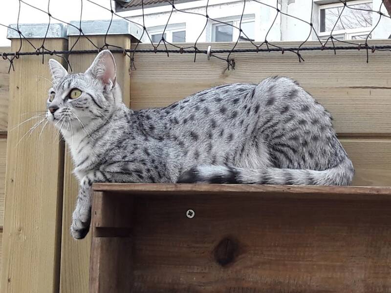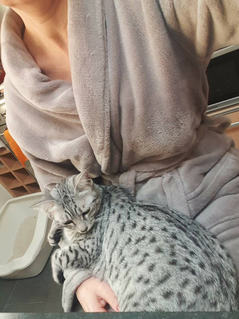 In de zomer van 2019 reden we naar Frankrijk om kennis te maken met dhr en mevr Boucher van Chatterie Fort de la Bosse Marnière. Het was dan ook een hele eer een poesje te mogen aanschaffen van hen. Later op het jaar gingen we Papillon halen. Zij ontpopte zich tot de allerliefste Mau in ons huis. Na haar 1ste bevalling liep het helemaal mis en moesten we haar steriliseren. Gelukkig gaf ze ons wel 2 prachtige kittens Poppy en Bisou.